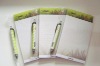 notepad with pen Size: 11.5*20cm back cover: 250g card board Inner: 70g offset paper ,4c printing Feature: Attractive design, great for resale in school,book stores. Ideal for promotion and gift Various size and shape are available